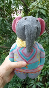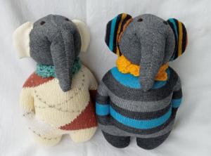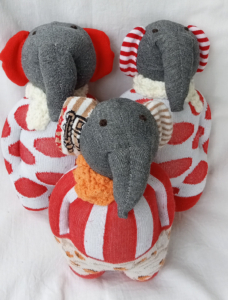 The dolls are made of second-hand and/or left-over socks and filled with pillow stuffing.